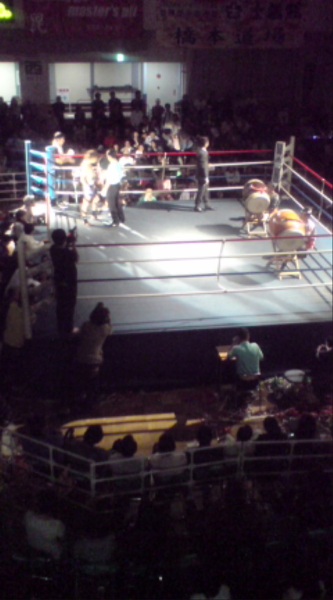 3ラウンド、左フックカウンターで藤原ダウン。その後偶然のバッティングでリーに出血あり、ドクターチェック、再開。リーのパンチが良く、藤原危ない。しかしその後藤原もパンチでリーを追い詰める。