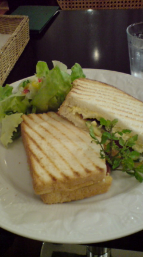 さて、料理。サンドイッチですが、レタスのサラダもついてますな。これがシャキシャキで、何よりドレッシングが美味しい。かかっている量も丁度よくて、酸っぱすぎず脂っこさも感じない。ドレッシングの美味しさを最大限引き出してます。