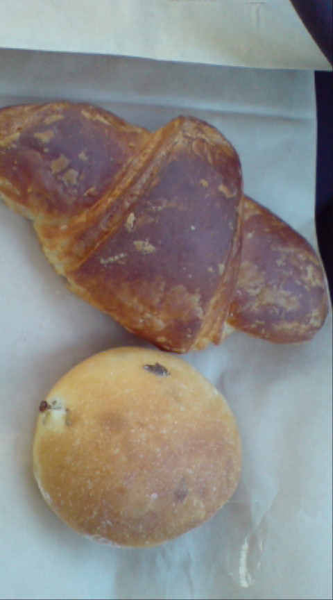 本当はイチヂクのパン食べたかったのですが、余りにも太りそうな大きさだったので、小さい(とは言っても一人で食べるには普通の大きさです)クロワッサンともうひとつ購入。