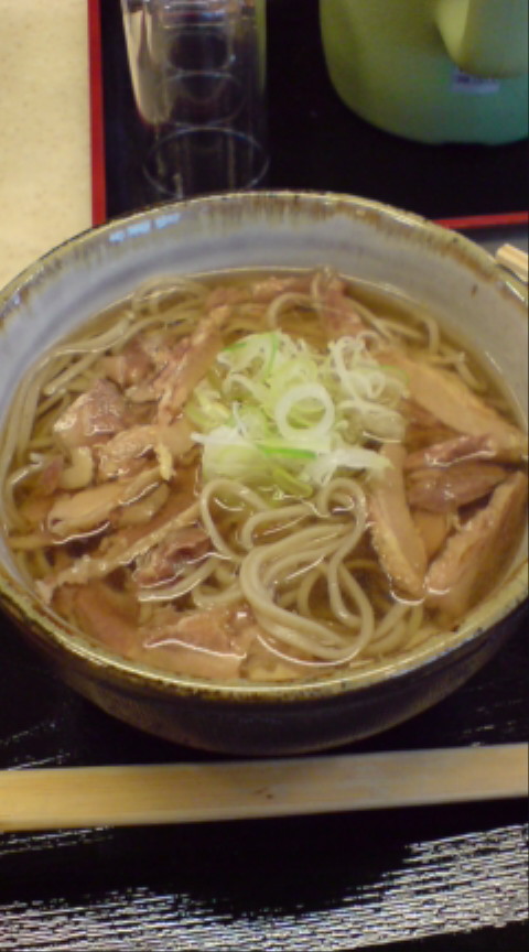 冷たい肉そば注文。そばはかなりコシがあり好みの食感。肉はチャーシューのような感じの肉がたっぷり。