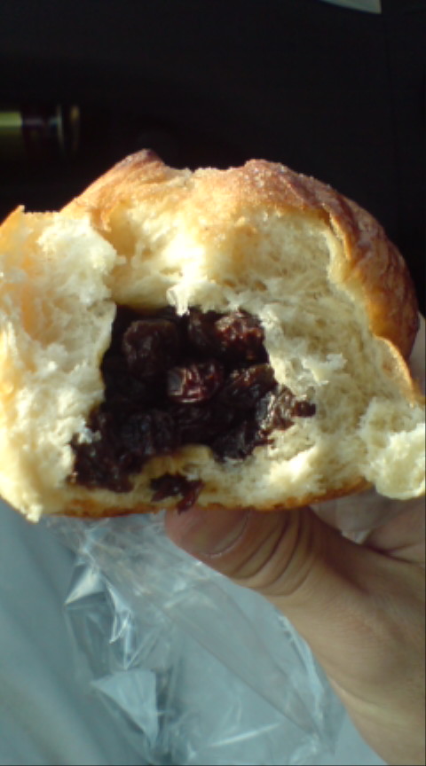 ここのあんパンとぶどうパンは、具の詰まり方がスゴいんですよ。ブドウパンのレーズンは散らばっているのではなく、真ん中にぎっしり詰まってるんですね~。