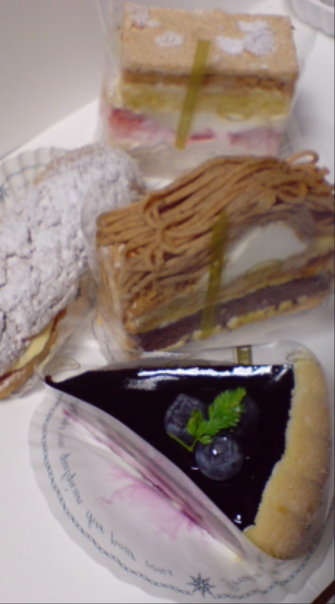 購入したのはシューアラクレーム、ムースマングー、ババオロム、ミルティーユ、モンブラン、ツマガリ、さざれ石。